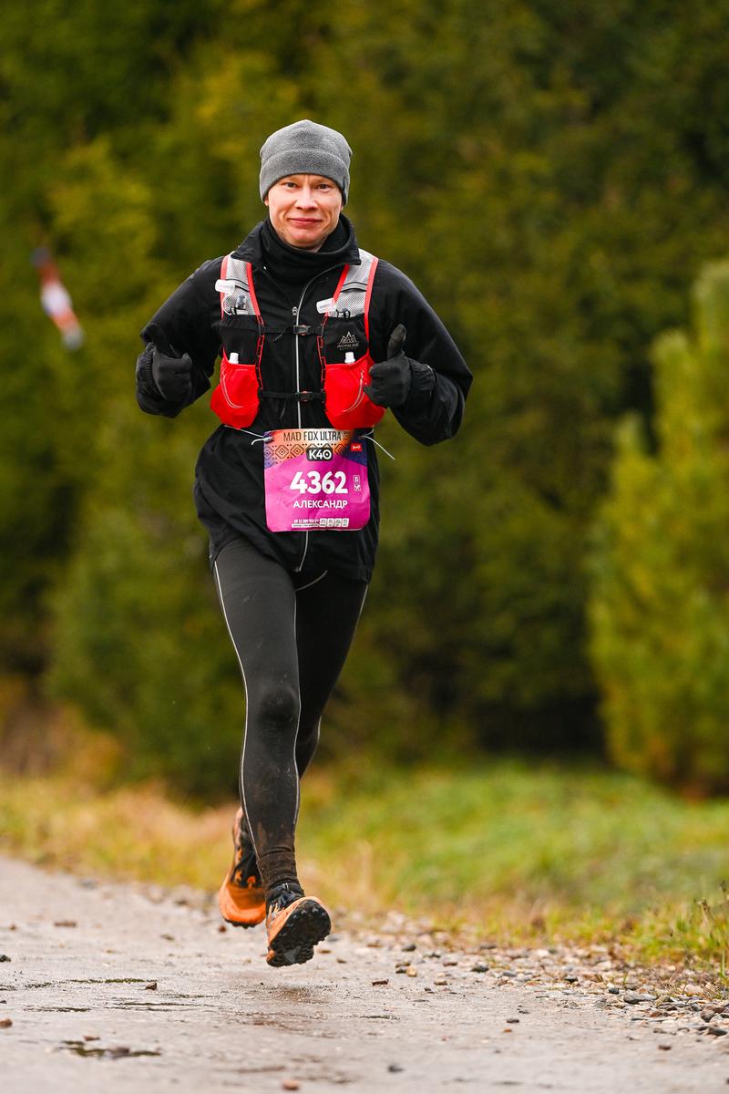 Так, теперь полтора километра под ЛЭП и финиш по асфальту. Осталось чуть-чуть. Вижу перед собой новую цель. По темпу понимаю, что это тоже участник с К40. Стараюсь быстрее переставлять ноги: "Вроде спина приближается. Сейчас догоню по асфальту".