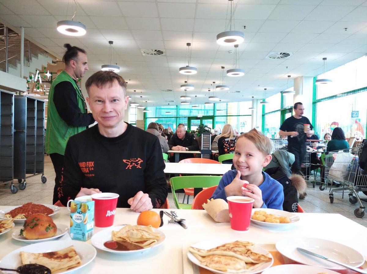 Дорога до Переславля пролетает почти незаметно. Традиционная остановка в "Глобусе" - это уже не просто обед, а своего рода ритуал. Набрали с Алехой трехэтажный поднос еды и наелись так, что остаток дороги пришлось активно бороться со сном. Ну а как иначе, завтра бежать 40 километров по лесам, полям и болотам. В столовой особенная атмосфера. Половина столов занята бегунами, а вторая половина - сотрудники ТЦ. Можно подсаживаться к любому столу, где люди не в зеленых спецовках, и начинать разговоры про тейпирование колена или про незамерзшие броды.