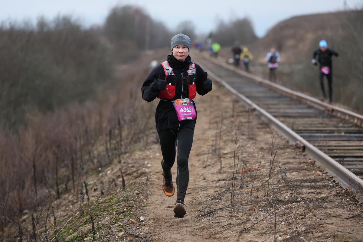 Сзади просят пропустить. Вроде Наталья Нещерет. Охотно пропускаю и встаю ей в спину. Она не стесняется просить дорогу, а я скачу за ней. Теперь бег по болоту пошел бодрее. Наташа юрко прыгает по кочкам, ныряет под ветки, а я держусь следом. Через два километра болот снова выходим на дорогу. Такое ощущение, что у меня нет стоп, а ноги заканчиваются где-то на голени. Через триста метров ноги возвращаются, а с ними и темп. Наташа на ровной дороге стала отставать.